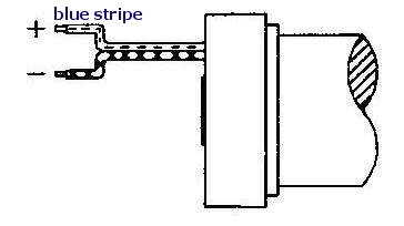 Connect the wire with the blue stripe (black wire with stripe if it's a 'Mini', red wire if it is a 'Maxi') to the positive (+) power supply terminal.