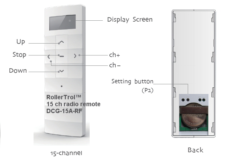 You may have purchased a multi-channel wall mount remote and/or a hand held remote with your actuator system. The process for assigning the actuator receiver to a channel on your remote is similar for all our remote controls, but there are some slight differences in the location of the P2 setting button on the remotes themselves.